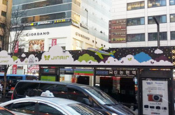 江南(カンナム)駅のバスステーションに飛行機のイラストが長く続いていました12月、1月と仕事が忙しいため・・・