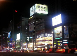 江南(カンナム)駅の近所にあるビルの外観に時間が表示されていますが、秒ごとに動く数字のためか、ここを通る・・・