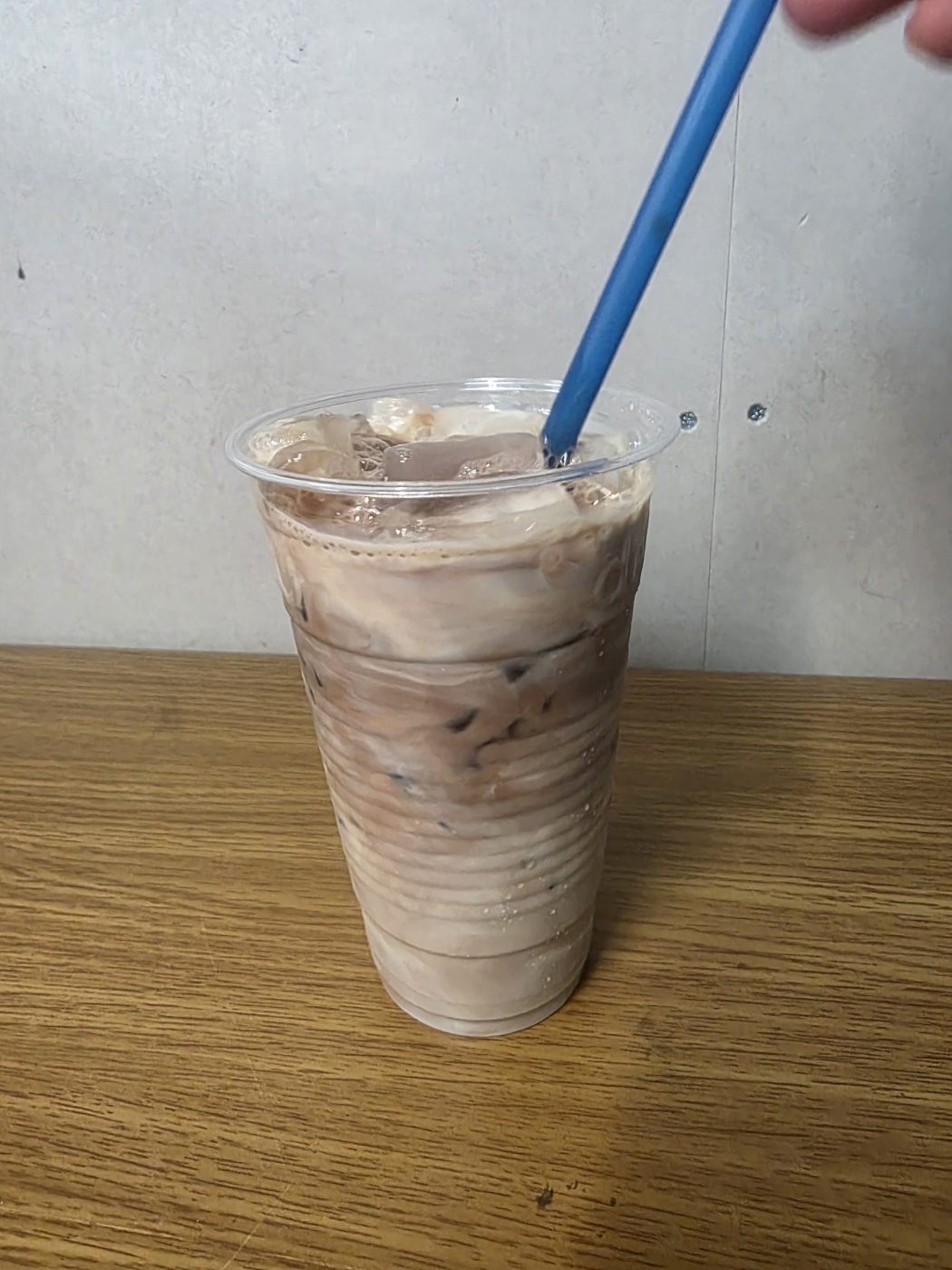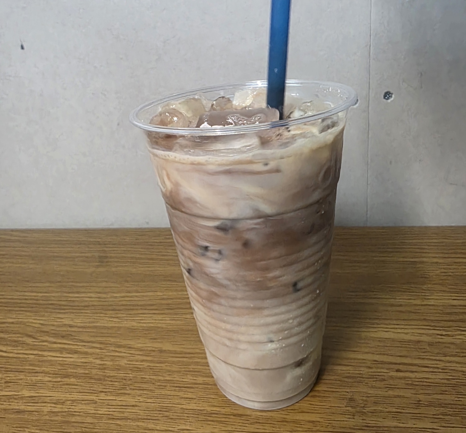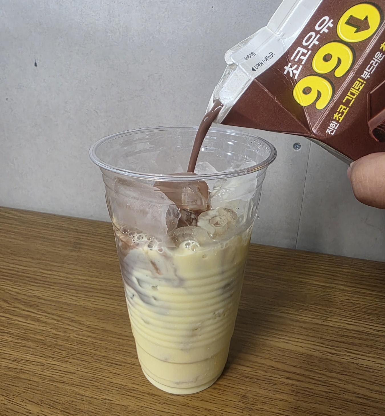 2.次にチョコ牛乳をたっぷり入れて、ストローでよく混ぜたら完成!